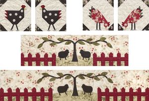 The instructions for sewing these four Roosters and the Red Fence plus the applique patterns for the Trees and Sheep come in Pattern 5.